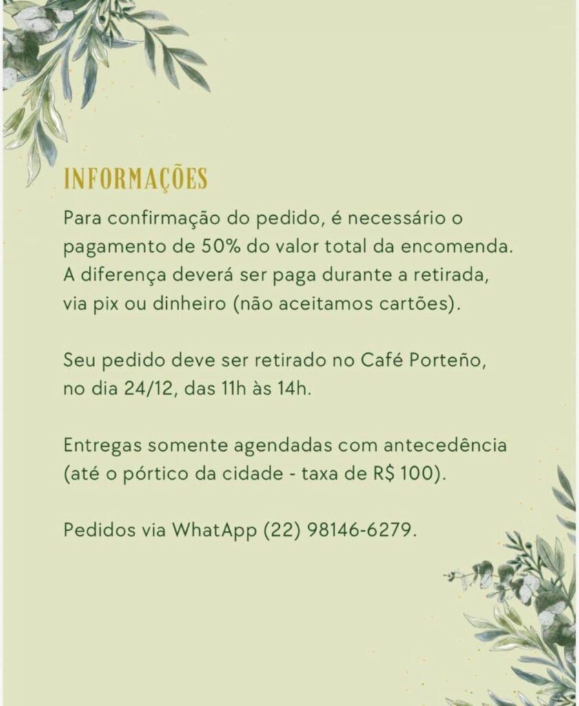 A proposta é clara: facilitar a ceia sem abrir mão de comida bem feita. As encomendas exigem sinal de 50% e a retirada acontece no dia 24 de dezembro, das 11h às 14h, no próprio café, no Centro. Entregas podem ser agendadas com antecedência.