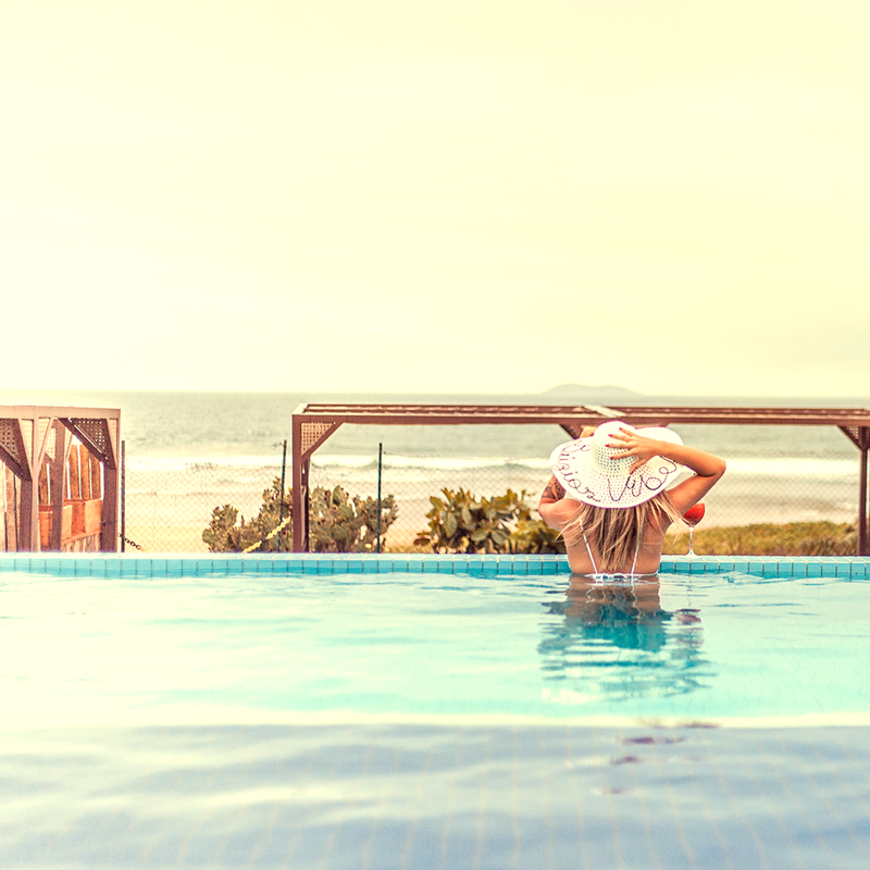 Área com um toque de SOFISTICAÇÃO que promove experiências marcantes de CONVIVÊNCIAS, CONVENIÊNCIA e DESCONTRAÇÃO. Composta por hidromassagens e uma faixa de piscina em níveis, que atuam como divãs de camarotes especiais com a exuberante vista para o mar azul esverdeado de Geribá. Ambiente com camões, espreguiçadeiras, mesas e poltronas, com áreas cobertas em sintonia com o SERVIÇO IMPECÁVEL.