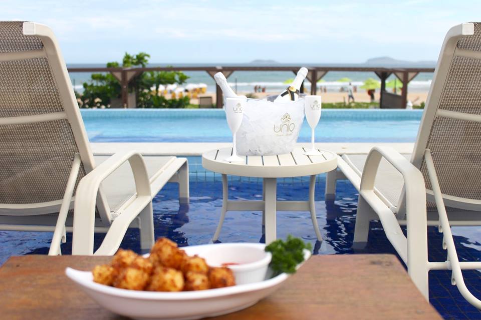 O Beach Bar possui bebidas nacionais e importadas, além de drinks e coquetéis, que também podem ser servidos no balcão estrategicamente posicionado para se apreciar o mar. A gastronomia atua em sinergia com aperitivos refinados e sanduíches gourmet e iguarias tentadoras.