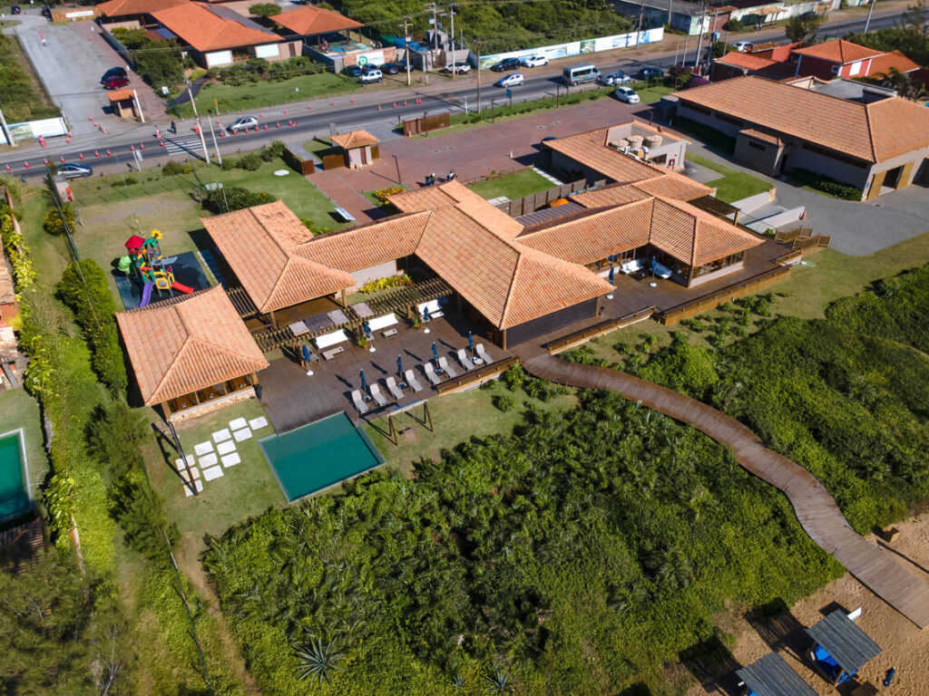 Esse legado é retomado de forma explícita no Aretê, empreendimento que assume como diretriz central o respeito às normas urbanísticas municipais e à arquitetura buziana. Ali, não há espaço para improviso volumétrico ou soluções que rompam com a escala do lugar. As construções seguem volumes ortogonais, telhados cerâmicos discretos, cores contidas e materiais submetidos à aprovação técnica. Equipamentos são ocultados, afastamentos respeitados e a paisagem tratada como parte do projeto, não como sobra.