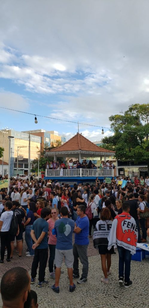 Nessa última quarta-feira (15) milhares de estudantes, professores, servidores da educação e manifestantes saíram às ruas para protestar contra os cortes do Governo Bolsonaro da educação básica a universidades federais. Na Região dos Lagos não foi diferente, centenas de estudantes das cidades vizinhas participaram do ato em Cabo Frio da tarde até o começo da noite. Além dos protestos em prol da educação, os manifestantes também protestaram contra a Reforma da Previdência.