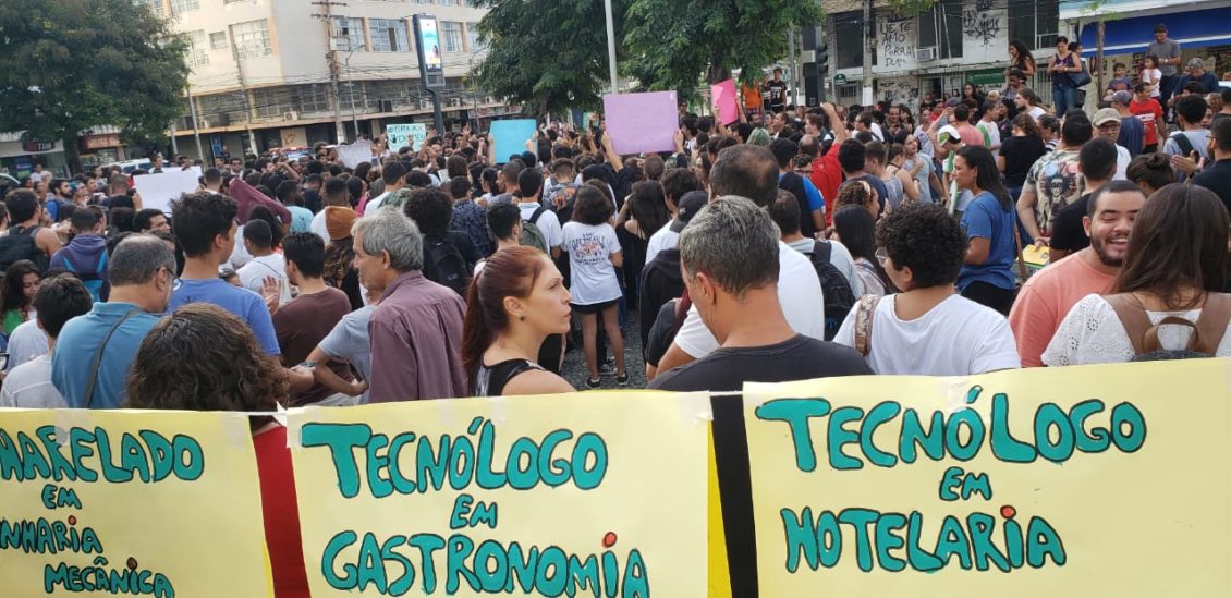 Em Macaé, estudantes e servidores de institutos e escolas federais de boa parte do Norte Fluminense se concentraram na Praça Veríssimo de Melo para a realização da manifestação contra a Reforma da Previdência e do corte de 30% na verba da educação. De acordo com os organizadores, além do protesto, aulas públicas foram dadas por professores dos institutos para mostrar a importância da educação e de como ela pode transformar vidas.