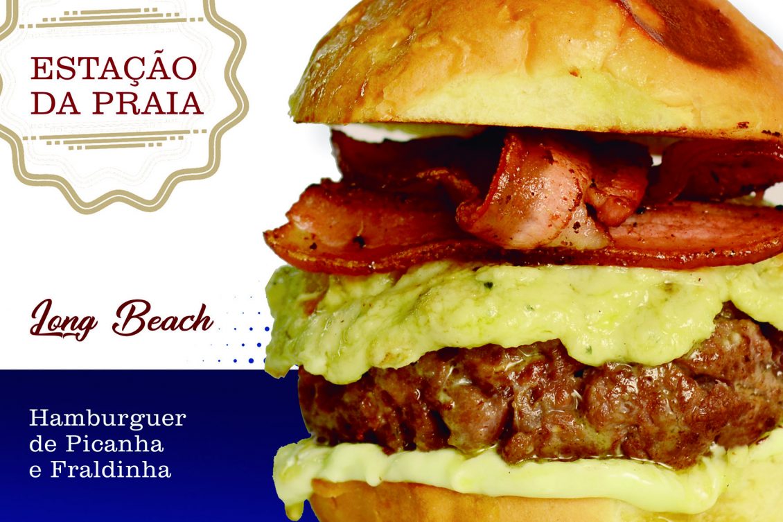 LONG BEACH: Hambúrguer de picanha e fraldinha, mix de quatro queijos, bacon, maionese da