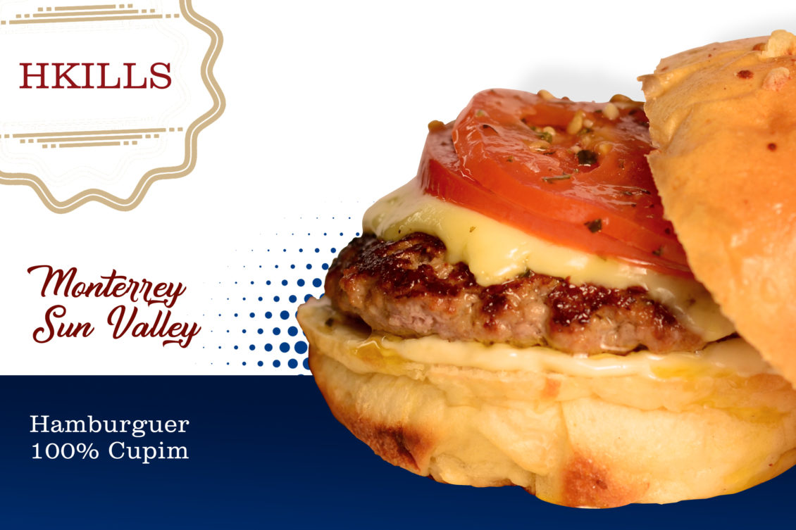 MONTERREY SUN VALLEY: Hambúrguer 100% cupim, queijo Monterrey Jack, tomate