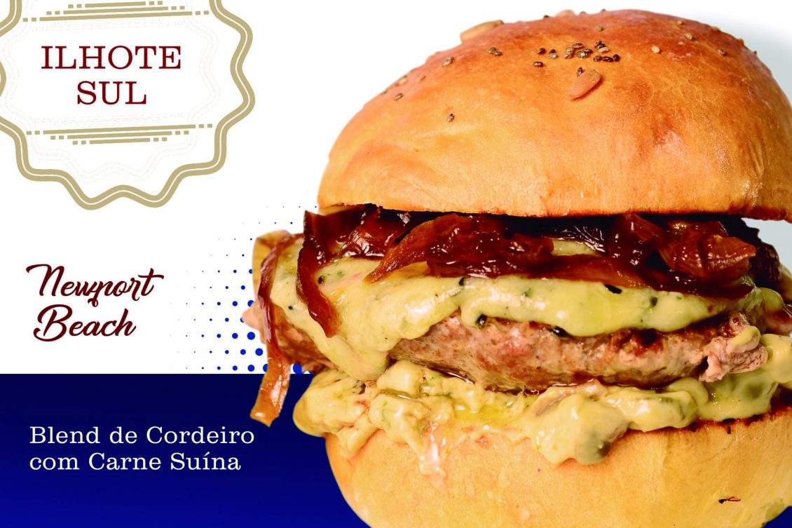 NEWPORT BEACH: Blend de cordeiro com carne suína, cebola caramelizada com rapadura e