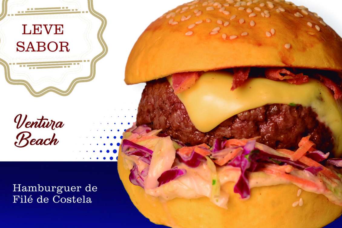 VENTURA BEACH: Hambúrguer de filé de costela, mussarela cremosa, american cole salad,