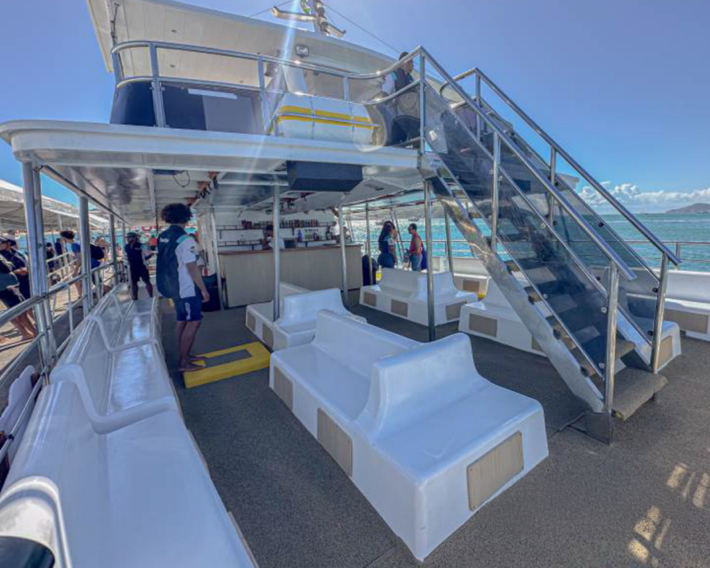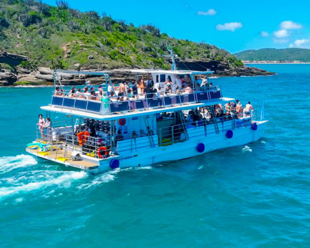 Com capacidade para até 140 passageiros e estrutura de dois andares, o catamarã foi concebido para percorrer a costa sem pressa, permitindo que o cenário — enseadas, costões e praias que tornaram Búzios um destino internacional — conduza o ritmo do passeio. As saídas diárias, sempre às 9h, 12h, e 15h, garantem regularidade e organização, atributos cada vez mais valorizados pelo visitante que busca conforto e previsibilidade.