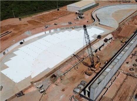 • Revestimento: aplicação do sistema Myrtha avançou em grande parte do canal e do fundo da piscina.