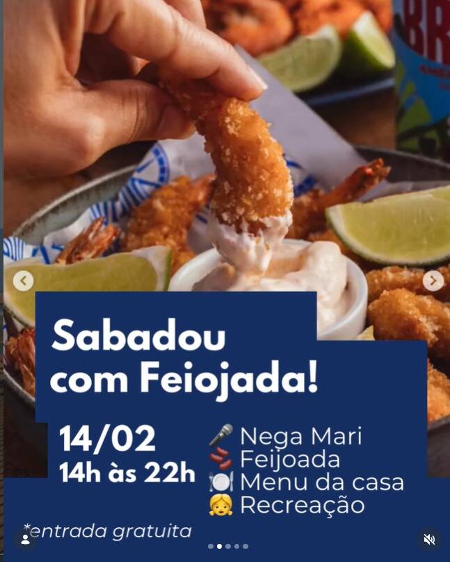 A proposta inclui shows diários, feijoada, samba, bailinho, DJ e opções do cardápio da casa, além de recreação infantil. A programação ocorre na unidade localizada na região da Marina, no bairro Aretê.