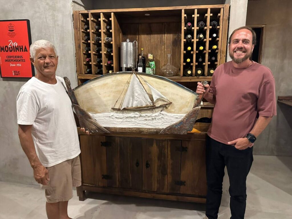 O novo endereço amplia outra dimensão do restaurante: a da arte. A Casa Fado está sendo ambientada com obras de Sérgio Soares, o Dido, artista plástico nascido e criado em Búzios. Sua matéria-prima é a madeira marcada pelo mar — restos de barcos, tábuas gastas, fragmentos recolhidos em Manguinhos. O resultado não é decoração temática, mas memória transformada em forma. Recebemos de Dido uma peça de presente — gesto raro, carregado de afeto e pertencimento — que resume bem o espírito do lugar: simples, forte, verdadeiro.