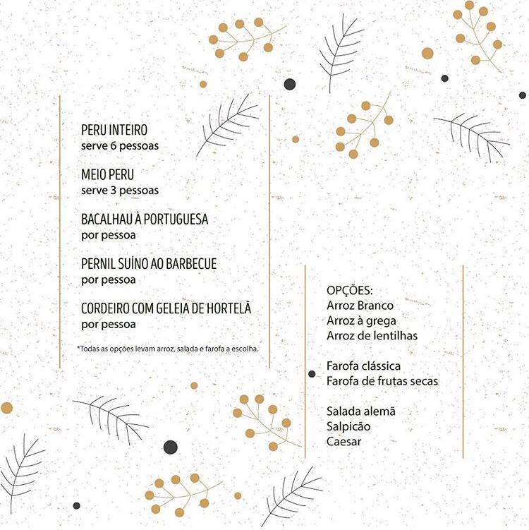 O Café Porteño oferece uma ceia com opção de Peru inteiro ou meio peru, que serve até seis pessoas com acompanhamentos de salada, que pode ser cesear, alemã ou salpicão e farofa que pode ser clássica ou de frutas. Além do Peru, Bacalhau, Pernil e Cordeiro completam a ceia. E claro, bolinho de bacalhau, as famosas rabanadas do Porteño, tortas especiais e um patê à campanha de dar água na boca.