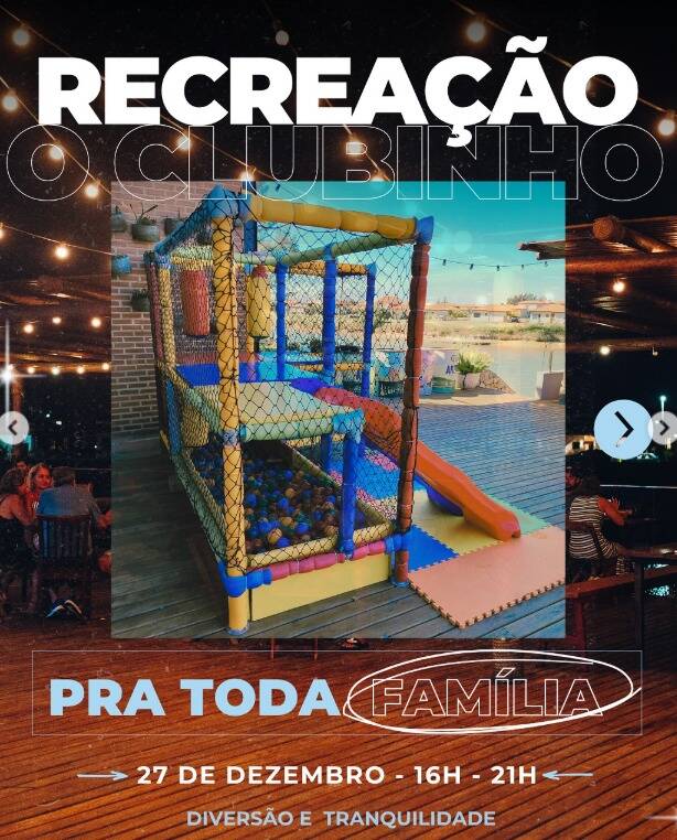 A programação inclui recreação infantil organizada pelo Clubinho, das 16h às 21h, garantindo atividades supervisionadas para crianças. À noite, um show pirotécnico, sem barulho, de três minutos marca a virada simbólica da festa.