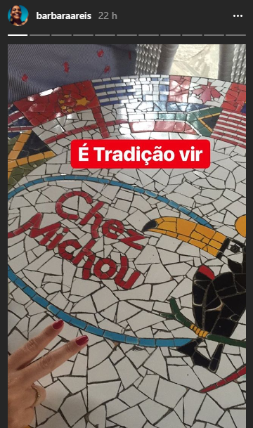Os atores fizeram pose e ainda publicaram diversas fotos e vídeos em suas redes sociais. Barbara comentou no stories do Instagram, “Chez Michou é tradição”.