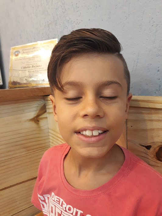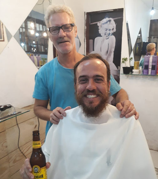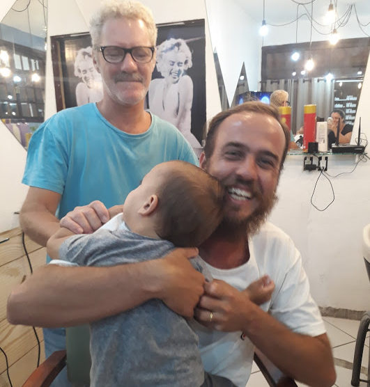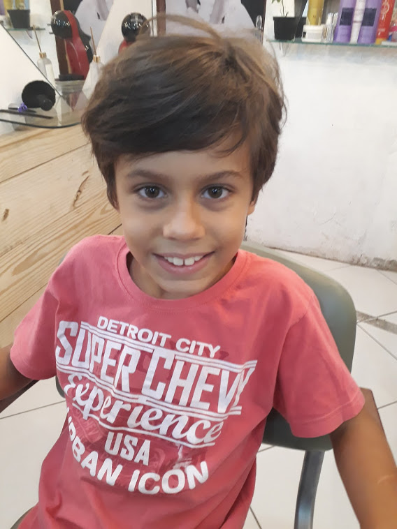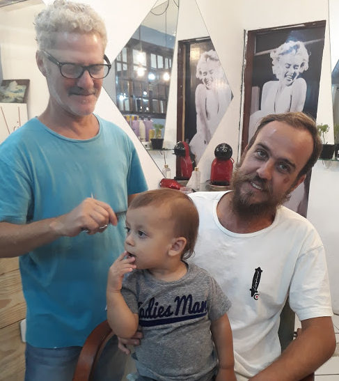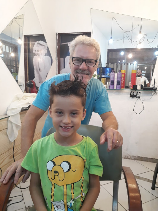 A cada dois meses é dia de festa aqui em casa, quando vamos ao salão do Thiago, cortar os cabelos da galera. E dessa vez, até o Lucas entrou na dança e cortou o ‘mullet’, e ficou com cara de menininho. Todos prontos para a volta às aulas. E o Victor ainda tem tratamento VIP, com direito a uma cervejinha bem gelada.