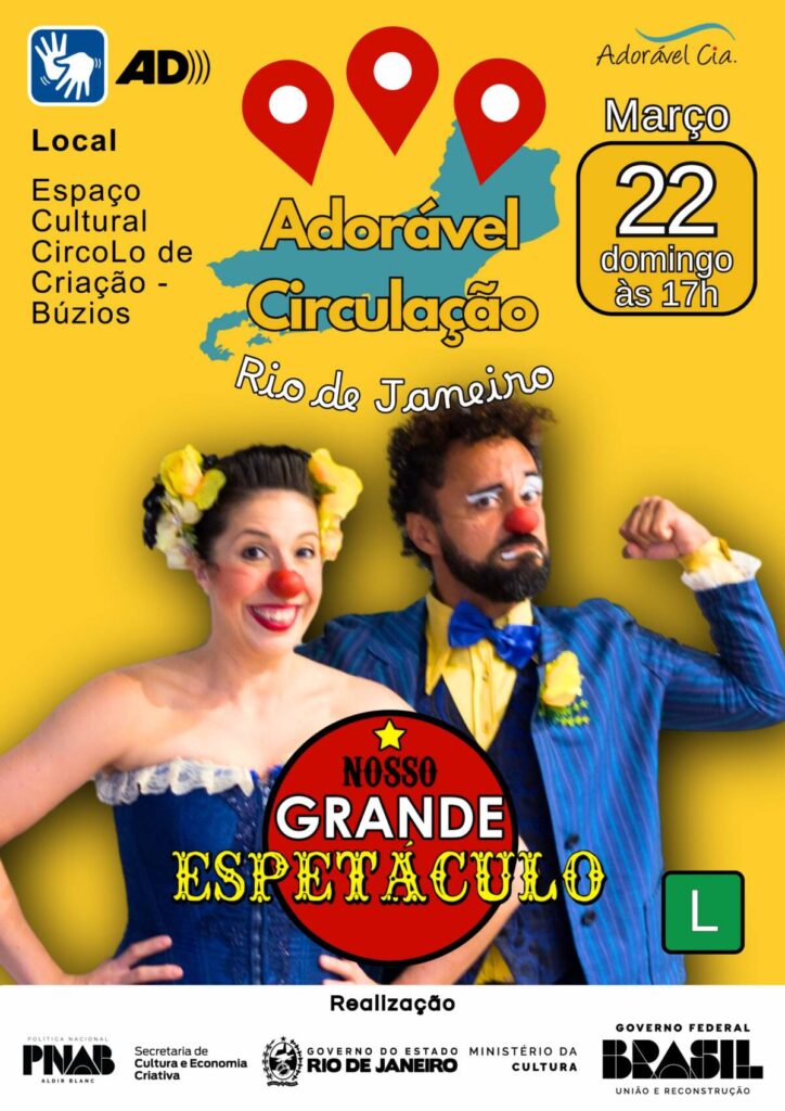 No domingo (22), às 17h, será apresentado Nosso Grande Espetáculo, voltado para toda a família. A apresentação reúne números de palhaçaria, mágica e outras expressões artísticas, em uma proposta que dialoga com o universo tradicional do circo e busca envolver crianças e adultos.