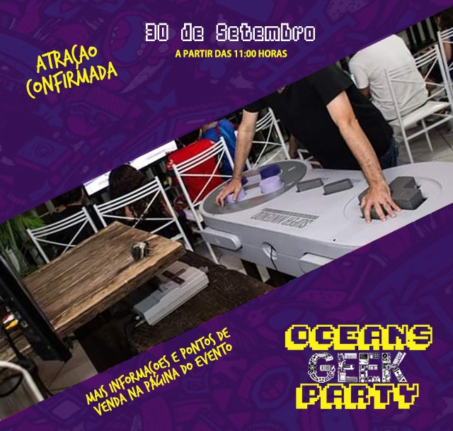 A Oceans Geek Party acontece no dia 30 de Setembro, a partir das 11h no Oceans Hostel, Avenida Teixeira e Souza 2424, 28905-100 – Cabo Frio. Mais informações no instagram @Oceansgeekparty ou no evento oficial do Facebook https://www.facebook.com/events/296279504281119/.