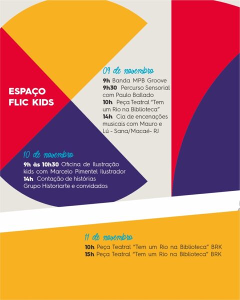 O Espaço do Saber e do Conhecimento funcionará das 8h às 20h, com a presença de diversas editoras de livros. Já no Espaço Flic Kids, a criançada vai poder aproveitar as apresentações musicais, danças, além de estações literárias com contação de histórias traduzidas em libras, teatro, percurso sensorial, e outras atividades.