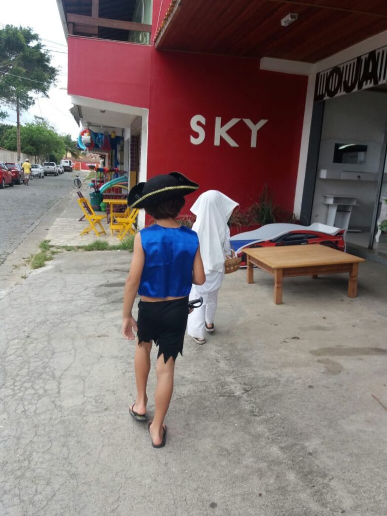 Fora o papo de Halloween não ser uma festa brasileira, aqui em casa é motivo para vestir fantasia e celebrar. Sim, porque cultura e diversão nunca são demais. Decidimos nos vestir e ir para rua pedir doces, ainda que nenhum comércio ou família estivesse preparado para o bordão “Gostosuras ou Travessuras”.