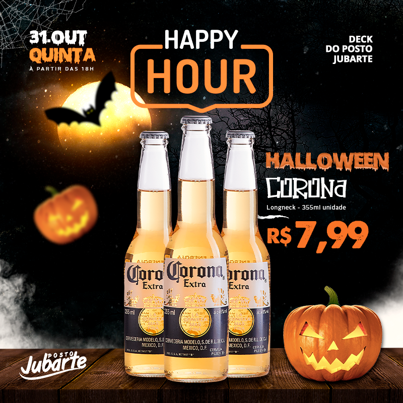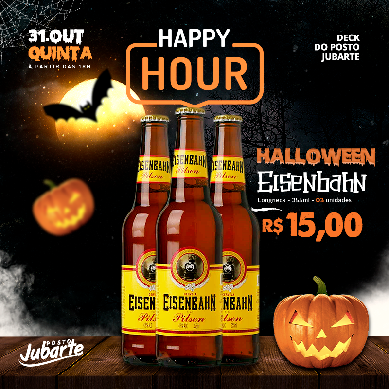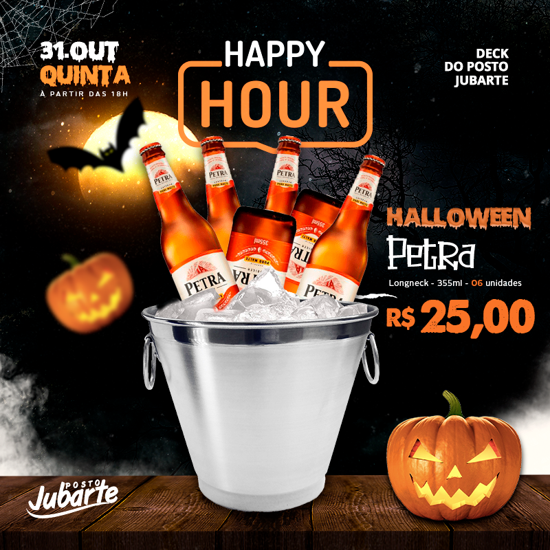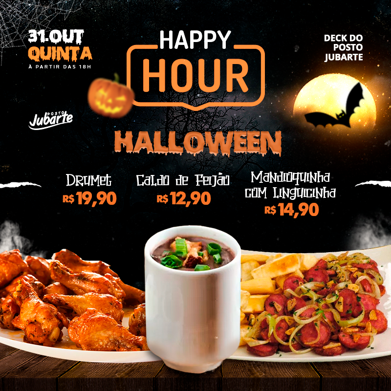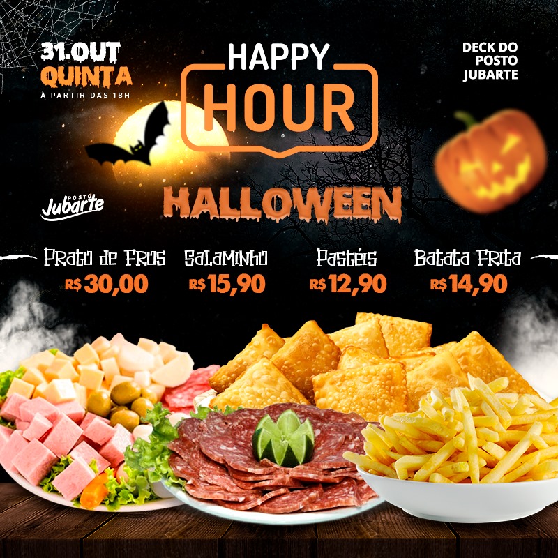 O Halloween vai ser de arrepiar no Happy Hour do Posto Jubarte, nesta quinta-feira (31) às 19h. Na programação, que rola no deck do posto, música ao vivo com Rodrigo Rigoni, bebidas e drinks com preços especiais, petiscos, gostosuras e muita travessura. Venha fantasiado.