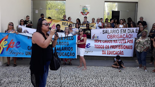 Após anunciar paralisação de 24 horas nesta quarta-feira (17), o SepeLagos fez uma manifestação em frente a prefeitura de Cabo Frio e ocupou o prédio. Segundo o Sindicato, é para cobrar reajusta salarial da categoria. Ainda de acordo com o Sepe, ele prometem sair somente se forem recebidos pelo prefeito Dr Adriano, que nesse momento participa da Conferência Municipal de Saúde.