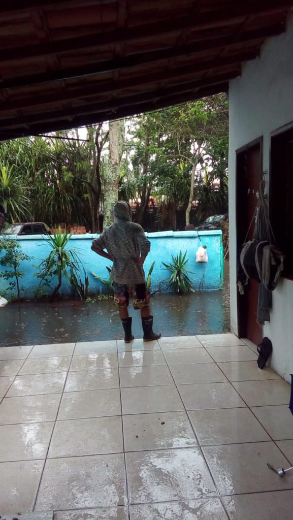 Um morados do bairro de Geribá, enviou uma foto do quintal, com a água invadindo a residência; “Se liga(…), a rua da casa da minha mãe esta alagada!Essa é a porta da casa e o quintal. A água esta quase entrando dentro de casa”, comentou.