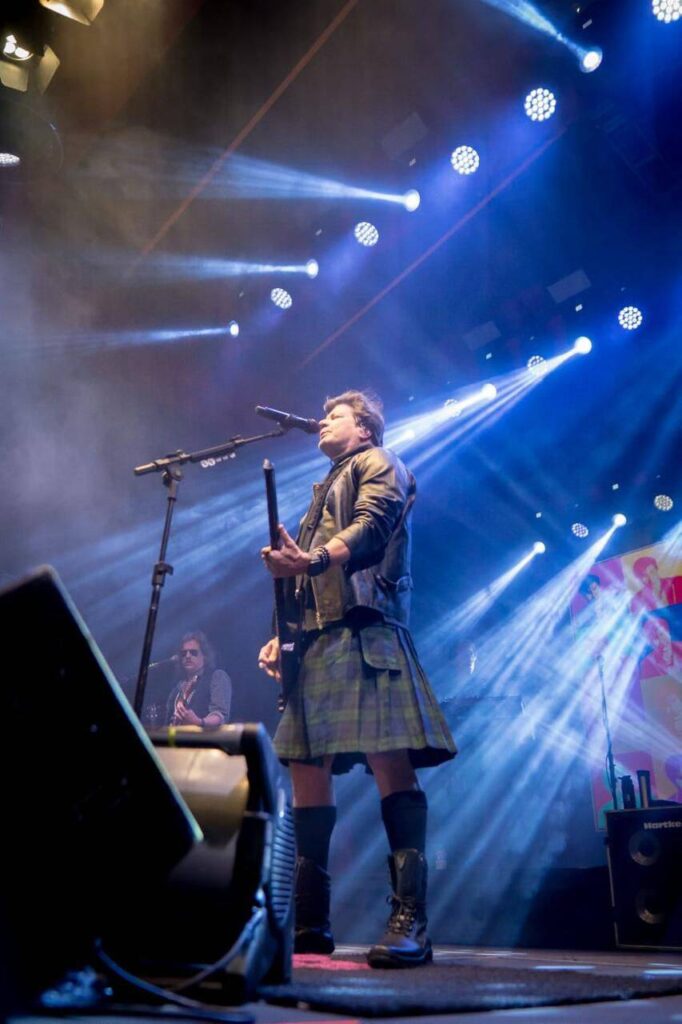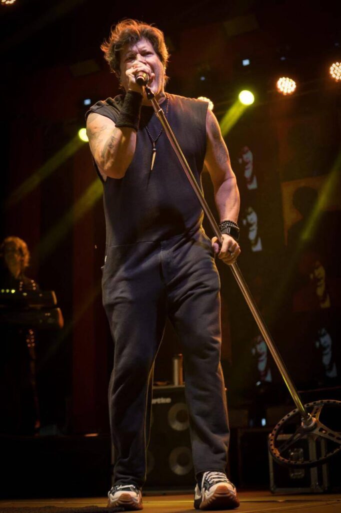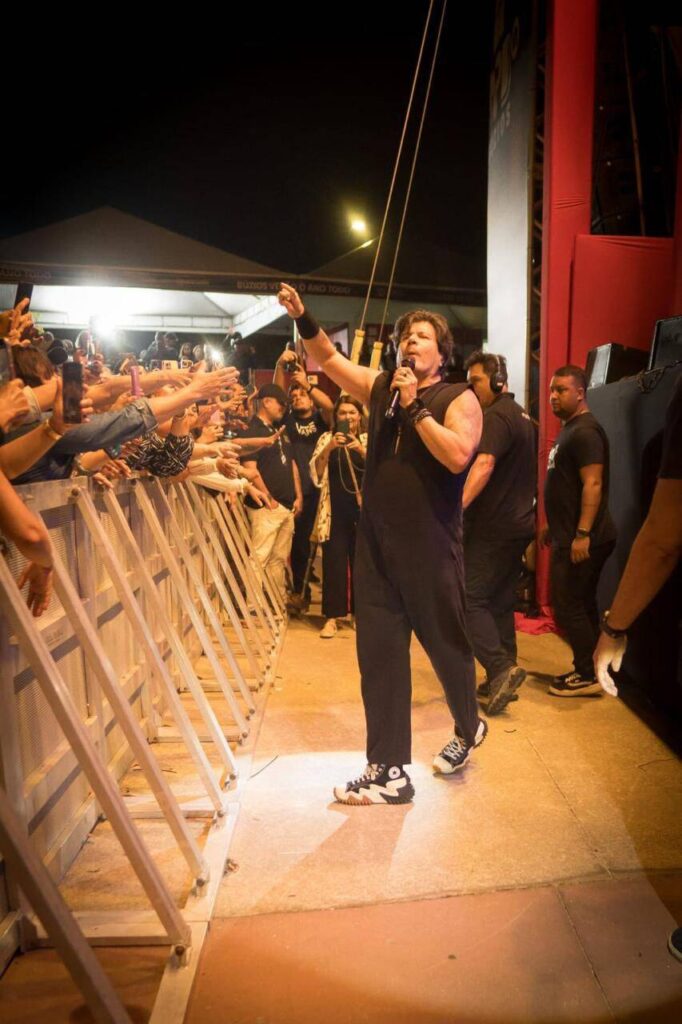 O ex-vocalista do RPM surgiu primeiro de saia preta estilizada, arrancando gritos e celulares erguidos, e depois trocou o figurino por um macacão justo que marcou partes que a saia escondia, em um espetáculo de atitude e confiança. O repertório reuniu clássicos como Olhar 43, A Cruz e a Espada e Rádio Pirata, em versões cheias de vigor e sensualidade. O cantor também cantou versões de Gita de Raul Seixas, Tempo Perdido da Legião Urbana e Flores Astrais do Secos e Molhados.