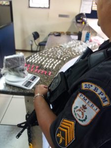 A Polícia Militar apreendeu na manhã desta terça-feira (18) no bairro Vila Caranga, em Búzios, uma grande quantidade de drogas e objetos utilizados por traficantes: