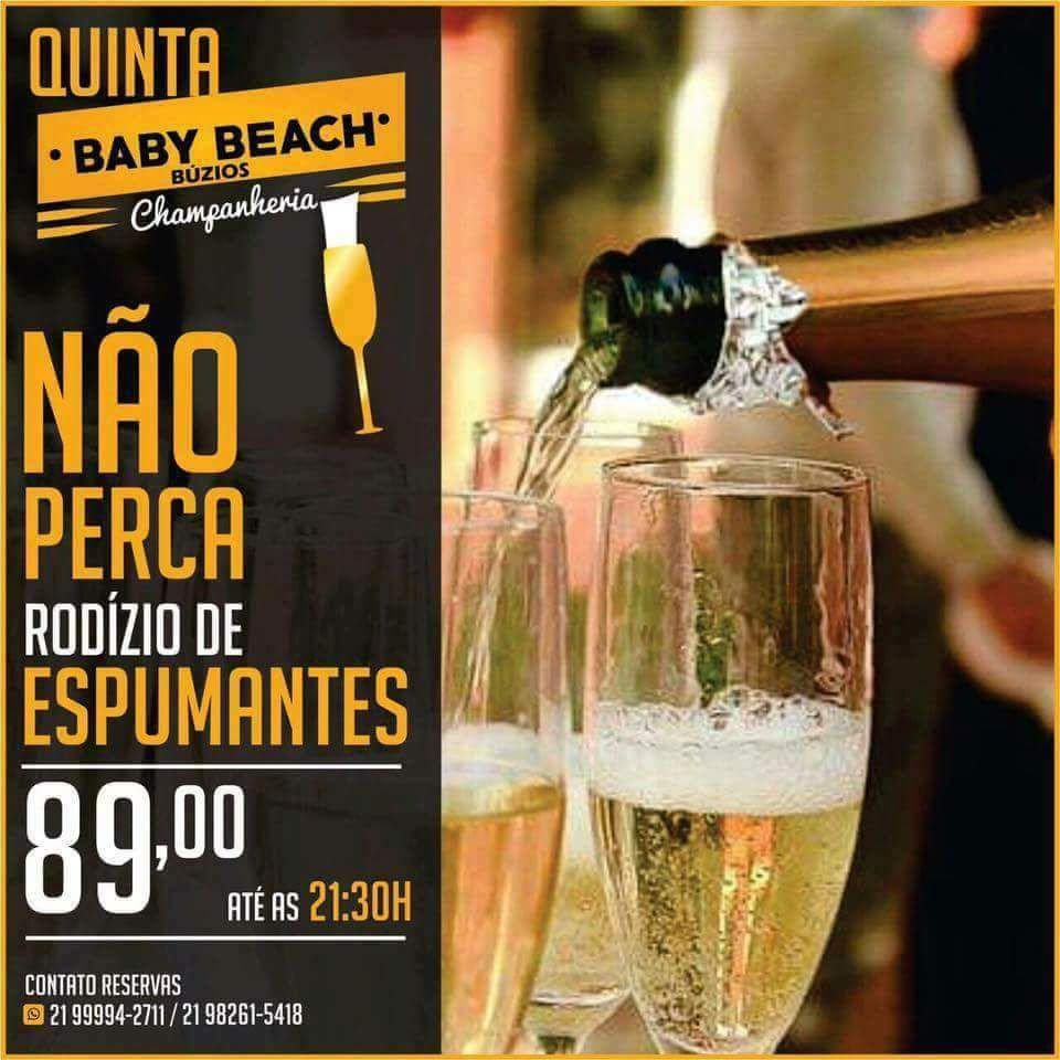 Na quinta(21) o tradicional rodízio de espumantes para quem sabe que um espumante faz toda a diferença. A carta de espumante da Baby Beach é perfeita e vai fazer da sua noite especial. Aproveita e já faz a sua reserva, as vagas são limitadas eo rodízio rola até às 21h. (21)99994-2711.