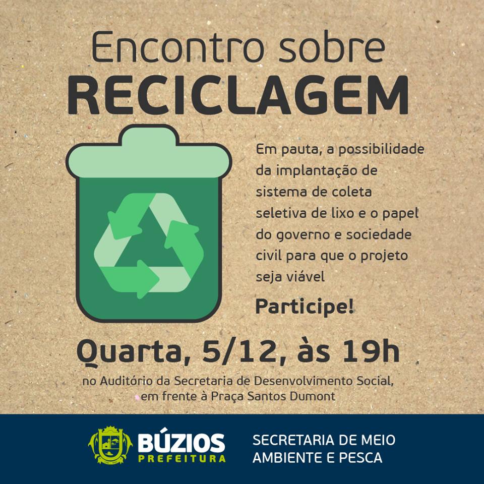 À pedido de representantes da sociedade e promovida pela Secretaria de Meio Ambiente e Pesca, a reunião estará debatendo a organização de um sistema de coleta de lixo seletiva, que demanda envolvimento do governo e da população para que se torne viável. Entre as ideias já citadas, a Prefeitura pretende ampliar uma parceria com catadores, além da promoção de um plano de educação ambiental no município, para a conscientização de todos.