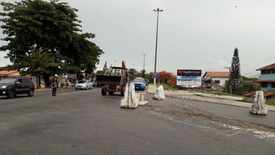 Ação conjunta entre a sub prefeitura de Tamoios e o Batalhão de Polícia Rodviária (BPRv), fechou as vias de acesso à Rodovia que dá acesso à cabeceira da Ponte que liga o segundo distrito de Cabo Frio e Barra de São João, distrito de Casimiro de Abreu.