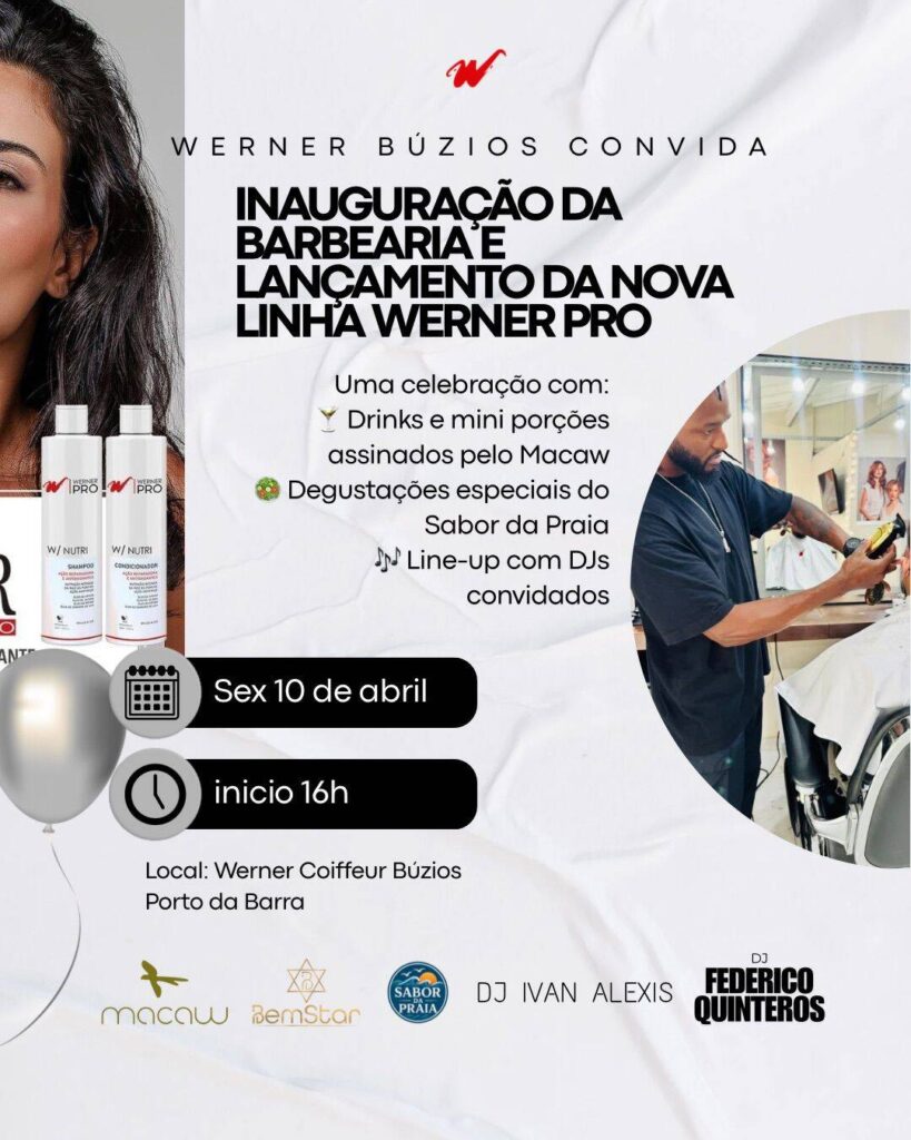O Werner Coiffeur Búzios promove, nesta sexta-feira (10), um evento que marca a inauguração da barbearia e o lançamento da nova linha Werner Pro. A programação acontece a partir das 16h, no espaço localizado no Porto da Barra, em Búzios.