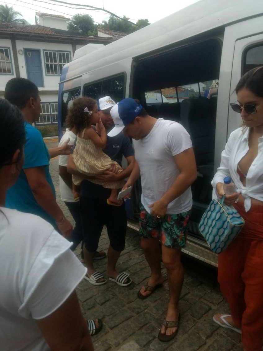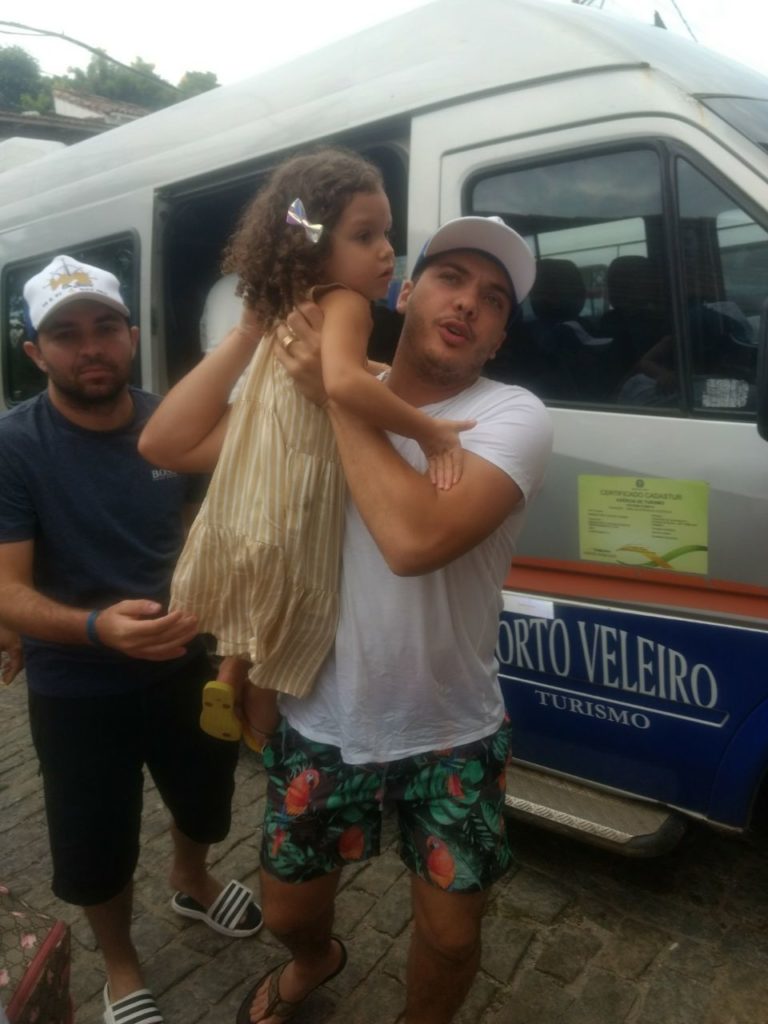 O cantor, que está a bordo de um Cruzeiro da MSC desceu no píer Porto Veleiro, e seguiu com a família para um Beach Clube do balneário, onde almoçou e curtiu a paisagem. Em seguida, voltou para o navio e seguiu viagem em família. Simpático posou para fotos e atendeu aos fãs.